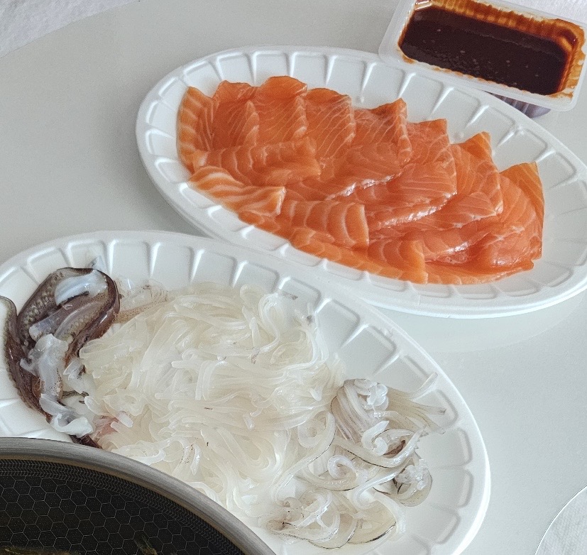 1回目サーモン연어とイカ오징어
