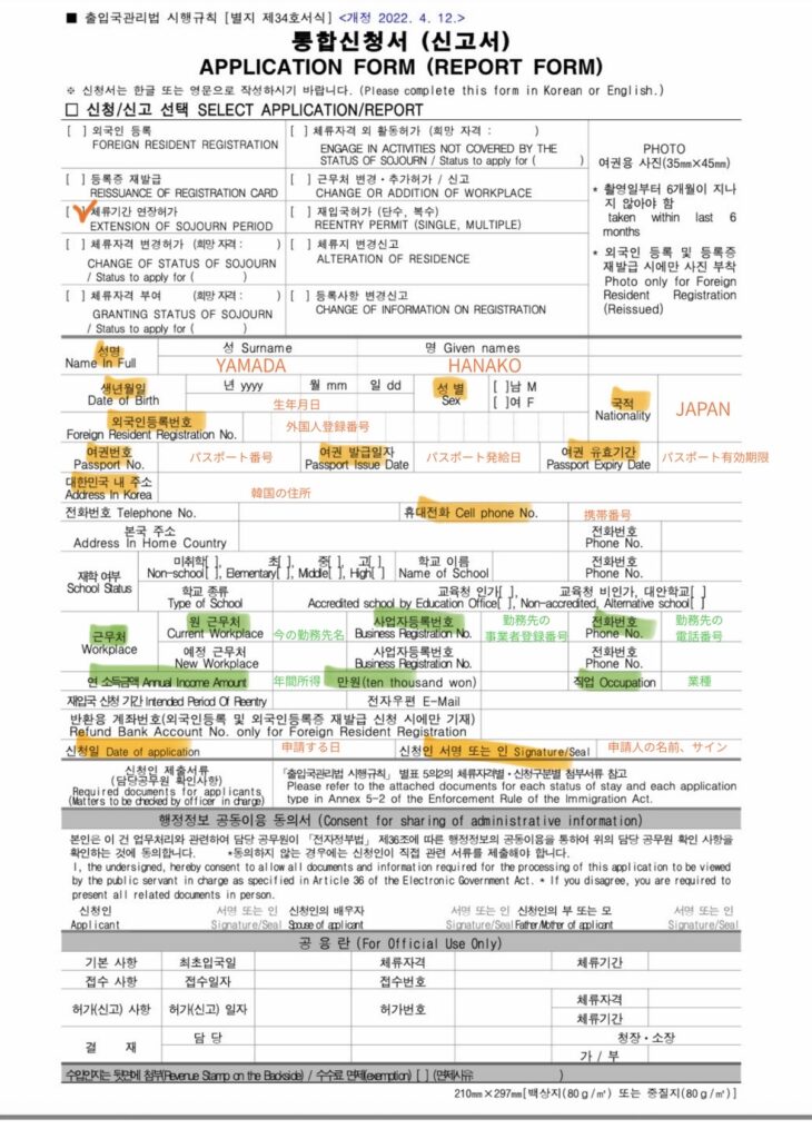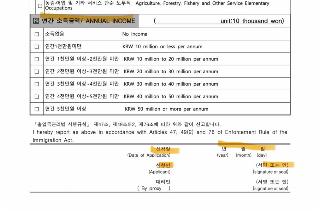 ⭐︎韓国での所得がある場合 - 外国人職業及び年間所得金額申告書
