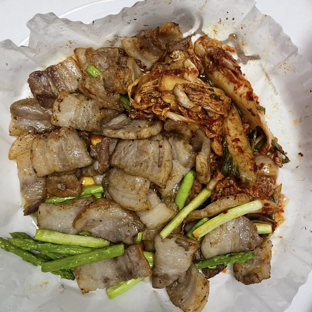 ただ400グラムくらいのサムギョプサルを180度のエアフライヤーに15分、切ってひっくり返して10分